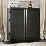 Modoc Espresso Server, 38"L X 19"W X 42"H, 200.2lbs. Finding a way to balance out contemporary minimalist designs can be difficult but this dining set tackles that challenge admirably. A perfect upgrade without going too far. Features: Chrome Trim Wood Grain Details