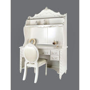 With a delicately decorated motif design, these case goods add the missing pieces to any storybook bedroom. This matching chair has decorative front legs, fabric seat and back, and Pearl White finish.
