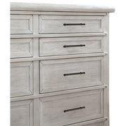 One could be reminded of winter with this gorgeous antique white bed. The sturdy wood construction features a curved plank style headboard and two storage drawers built into the footboard. It's a grand addition to any bedroom - one that makes a statement.