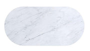 KOBLENZ Coffee Table, Light Teal, 48"L X 24"W X 18"H, 70.2lbs. Posh and chic, these rounded tables are reminiscent of the bygone era of Hollywood stars. Infused with Art Deco inspiration, each piece features matte gold frames that hold up the top and bottom shelves. The top is made of faux marble in a glorious white shade with subtle variations in color. The sides add texture to an otherwise sterile piece--reeded panels curve around the corners and conceal a storage drawer for a slick, contemporary look.