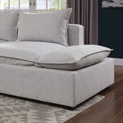 Uniquely extra-plush, this fully-upholstered soft sectional has a few surprises; a removeable woodgrain top on that can serve as an end table and spacious storage bin, and an adjustable arm cushion on the other. Optional ottoman available.