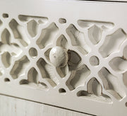 This lighter tone chest will be a great addition to any farmhouse space. Between the light vintage ivory frames to the contrasting rustic gray crown moldings, it exudes irresistible charm. And then there's the attention to detail: it is meticulously hand-painted and hand-finished for that exotic distressed look. So much has gone into the construction as well; each drawer feature English dovetails and ball-bearing metal side glides for maximum weight capacity. Finally, the chest is made of sustainably sourced pine wood.