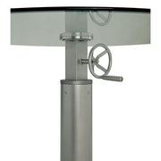 Chic meets sleek with this daring pipe inspired dining set. The clear tempered glass rests beautifully while silver powder coating adds shine to the industrious base. Two-toned chairs create a uniform look with matching legs and round leg rests. Warm veneer seats pair with the rounded backs, providing comfort for hours on end. With industrious accents and glamorous shine, this dining set provides the ultimate balance of edgy and luxurious. Product Dimensions: 30"H