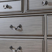 SYRACUSE Night Stand, Gray, 29"W X 17 3/8"D X 29 1/4"H, 77lbs. Take your bedroom set to the next level. These beautifully decorated case goods are finished in a stunning dark walnut finish. Antique brass handles with acrylic accents complete the overall luxurious look and feel.