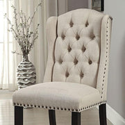 Wingback Chair, Beige (2/CTN), 22 1/2"W X 26 3/4"D X 42 1/2"H, 57.2lbs. Rustic charm meets upscale design in the form of this stunning collection. Elegant linen-like chairs add sophisticated appeal with their wingback sides, button tufting and nailhead trim.